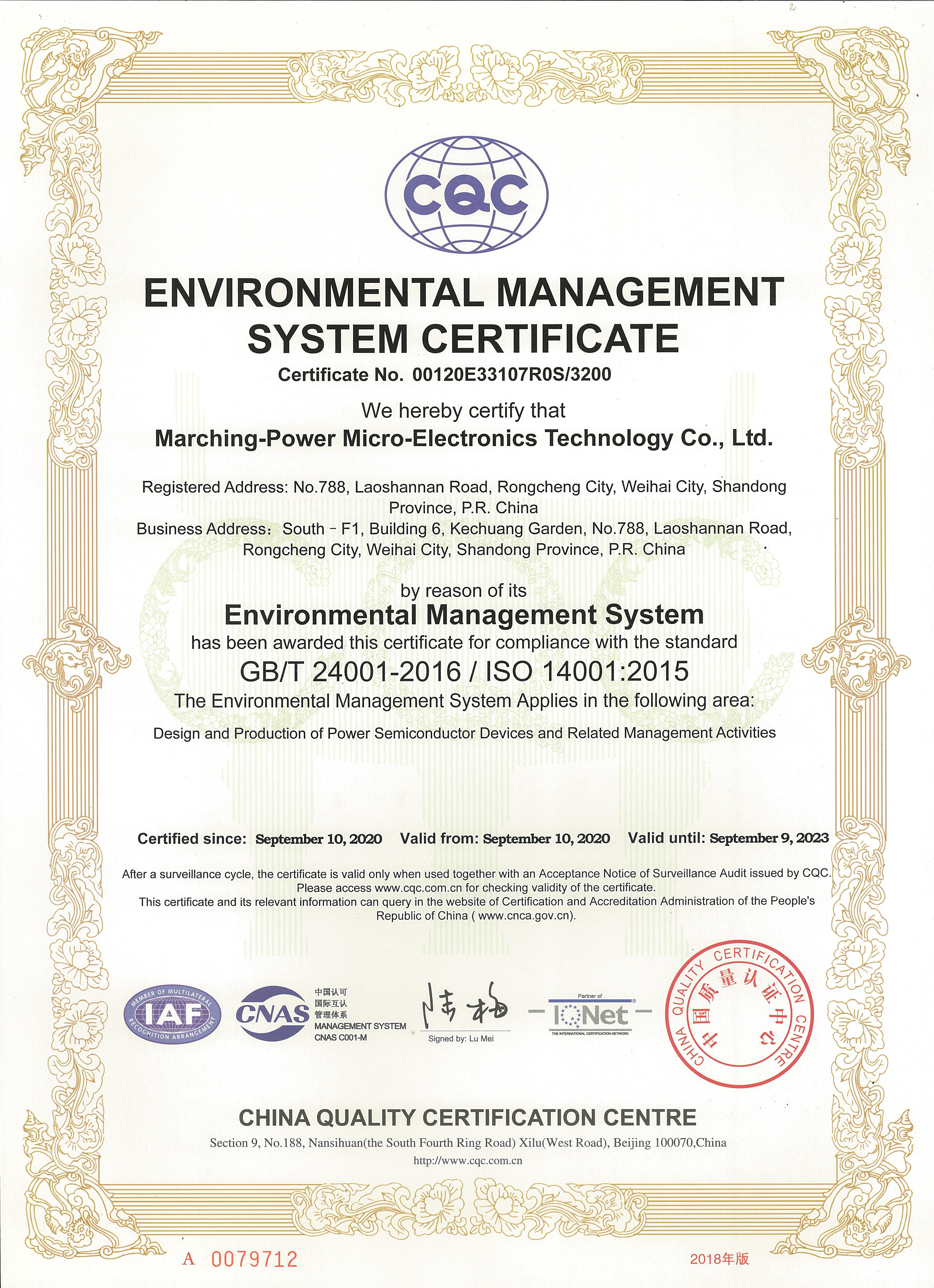 Jiangsu Marching Power Microelectronics Group Co., Ltd. (Marching Power) is a high-tech enterprise integrating design, development and packaging of power semiconductor. The core products includes silicon-based chip and module series, third-generation semiconductors (SiC, GaN) and power semiconductor testing equipment.